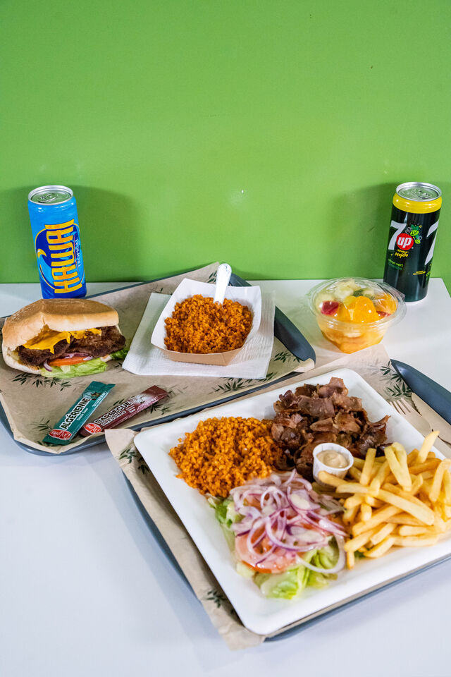 • Nos Burgers & Salades : Cheese burger, Kofte, Salades Kebab, César et Grecque.